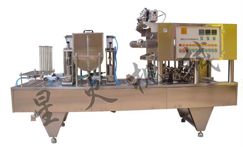 綠豆沙封口機適用于各種八寶粥、綠豆沙等產(chǎn)品的生產(chǎn),能自動完成塑料碗的自動落碗、充填米、充填蓮子等、水灌裝、紫外線消菌、光電定位、兩道熱封、自動對芯剪切及廢膜回收等功能。