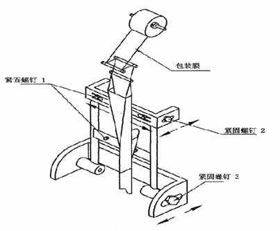3、 包裝袋四邊成棱形時,松開2個緊固螺絲2進(jìn)行前后調(diào)整。